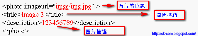 TiltViewer是一個有用的網頁方式管理瀏覽相片的flash軟件,可幫助您定制3D動畫圖像瀏覽應用,以幫助您的工作、生活,可以製作flash相冊 <br /><br /><br /><a name='more'></a><br /><br /><br /><b>1.</b>用網頁編輯工具修改 <span style="color: red;">index.html </span>(例如:Dreamweaver)<br /><table border="1"><tbody><tr><td height="250" width="250"><div class="separator" style="clear: both; text-align: center;"></div><div class="separator" style="clear: both; text-align: center;"><a href="http://2.bp.blogspot.com/-4eP6Sa3llzw/T3XMLD7_C4I/AAAAAAAAAMA/hXhPYPvc7mg/s1600/2012-03-30_225615.gif" imageanchor="1" style="margin-left: 1em; margin-right: 1em;"><img border="0" height="93" src="http://2.bp.blogspot.com/-4eP6Sa3llzw/T3XMLD7_C4I/AAAAAAAAAMA/hXhPYPvc7mg/s320/2012-03-30_225615.gif" width="320" /></a></div><br /></td> <td height="100" width="200"><div class="separator" style="clear: both; text-align: center;"><a href="http://2.bp.blogspot.com/-2jNHsUyOgsk/T3XMPO7Fy1I/AAAAAAAAAMI/o4XrYstFifc/s1600/2012-03-30_230139.gif" imageanchor="1" style="margin-left: 1em; margin-right: 1em;"><img border="0" height="230" src="http://2.bp.blogspot.com/-2jNHsUyOgsk/T3XMPO7Fy1I/AAAAAAAAAMI/o4XrYstFifc/s320/2012-03-30_230139.gif" width="320" /></a></div><br /></td> </tr></tbody></table><br /><div><br /></div><div><br /></div><div><b>2.</b>放圖片在 <span style="color: red;">imgs </span>資料夾<br /><br /><br /><b>3.</b><span style="background-color: white; font-family: Verdana, Arial, Helvetica, sans-serif; font-size: 15px; letter-spacing: 1px; line-height: 21px;">修改gallery.xml 如下圖:(有幾多組</span><span style="background-color: white; color: #4c4c4c; font-family: Verdana, Arial, Helvetica, sans-serif; font-size: 15px; letter-spacing: 1px; line-height: 21px;"><photo></photo>就有幾多個圖片)</span><br /><span style="background-color: white; font-family: Verdana, Arial, Helvetica, sans-serif; font-size: 15px; letter-spacing: 1px; line-height: 21px;"><br /></span><br /><div class="separator" style="clear: both; text-align: center;"><a href="http://4.bp.blogspot.com/-_V-X2ETHhP0/T3XP2QKn74I/AAAAAAAAAMQ/Lad17LYoZVg/s1600/2012-03-30_232144.gif" imageanchor="1" style="clear: left; float: left; margin-bottom: 1em; margin-right: 1em;"><img border="0" height="58" src="http://4.bp.blogspot.com/-_V-X2ETHhP0/T3XP2QKn74I/AAAAAAAAAMQ/Lad17LYoZVg/s320/2012-03-30_232144.gif" width="320" /></a></div><span style="background-color: white; font-family: Verdana, Arial, Helvetica, sans-serif; font-size: 15px; letter-spacing: 1px; line-height: 21px;"><br /></span><span style="font-family: Verdana, Arial, Helvetica, sans-serif;"><span style="font-size: 15px; letter-spacing: 1px; line-height: 21px;"><br /></span></span></div><div><br /><br /><br /><br /><br /><span style="background-color: white; color: #4c4c4c; font-family: Verdana, Arial, Helvetica, sans-serif; font-size: 15px; letter-spacing: 1px; line-height: 21px;">下載 </span><br /><a href="https://docs.google.com/file/d/0B75AIfbLCh_oRW9aUVpLRGkzcjA/edit">https://docs.google.com/file/d/0B75AIfbLCh_oRW9aUVpLRGkzcjA/edit</a></div><div><br /><br /></div><div><br /></div><div><br /></div><div><br /></div><div><br /></div><div><br /></div><div><br /></div><div><br /></div><div><br /></div><div><br /></div><div><br /></div>