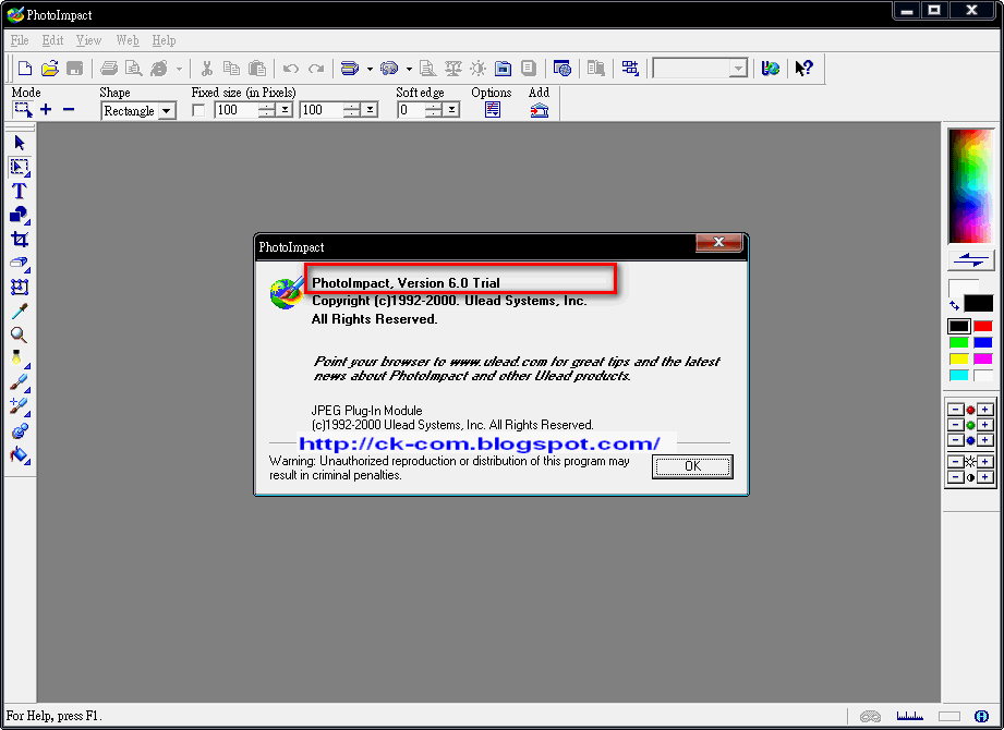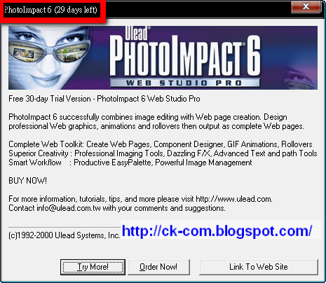 <div class="separator" style="clear: both; text-align: center;"><a href="http://4.bp.blogspot.com/-iGn0a4SJToA/T2RGSGTr7HI/AAAAAAAAAIA/2pDzZIUlWaM/s1600/2004-08-31_005215.gif" imageanchor="1" style="margin-left: 1em; margin-right: 1em;"><img border="0" height="278" src="http://4.bp.blogspot.com/-iGn0a4SJToA/T2RGSGTr7HI/AAAAAAAAAIA/2pDzZIUlWaM/s320/2004-08-31_005215.gif" width="320" /></a></div><br /><div class="separator" style="clear: both; text-align: center;"><a href="http://4.bp.blogspot.com/-z7pgo3usADA/T2RGSiaNV5I/AAAAAAAAAIE/T6MppzuacqA/s1600/2004-08-31_005329.gif" imageanchor="1" style="margin-left: 1em; margin-right: 1em;"><img border="0" height="232" src="http://4.bp.blogspot.com/-z7pgo3usADA/T2RGSiaNV5I/AAAAAAAAAIE/T6MppzuacqA/s320/2004-08-31_005329.gif" width="320" /></a></div><br /><span style="color: red;"><b>請大家支持正版,不要在網上下載破解檔。</b></span><br /><b><br /></b><b>PhotoImpact 6 英文試用版</b><br /><a href="https://docs.google.com/open?id=0B75AIfbLCh_oa2VxN094YTJMQms">https://docs.google.com/open?id=0B75AIfbLCh_oa2VxN094YTJMQms</a><br /><b><br /></b><b><br /></b><b>PhotoImpact 8 繁體中文試用版</b><br /><a href="https://docs.google.com/file/d/0B75AIfbLCh_oNjNDQWE4LVNScWk5eURQam9mbDVrZw/edit">https://docs.google.com/file/d/0B75AIfbLCh_oNjNDQWE4LVNScWk5eURQam9mbDVrZw/edit</a>